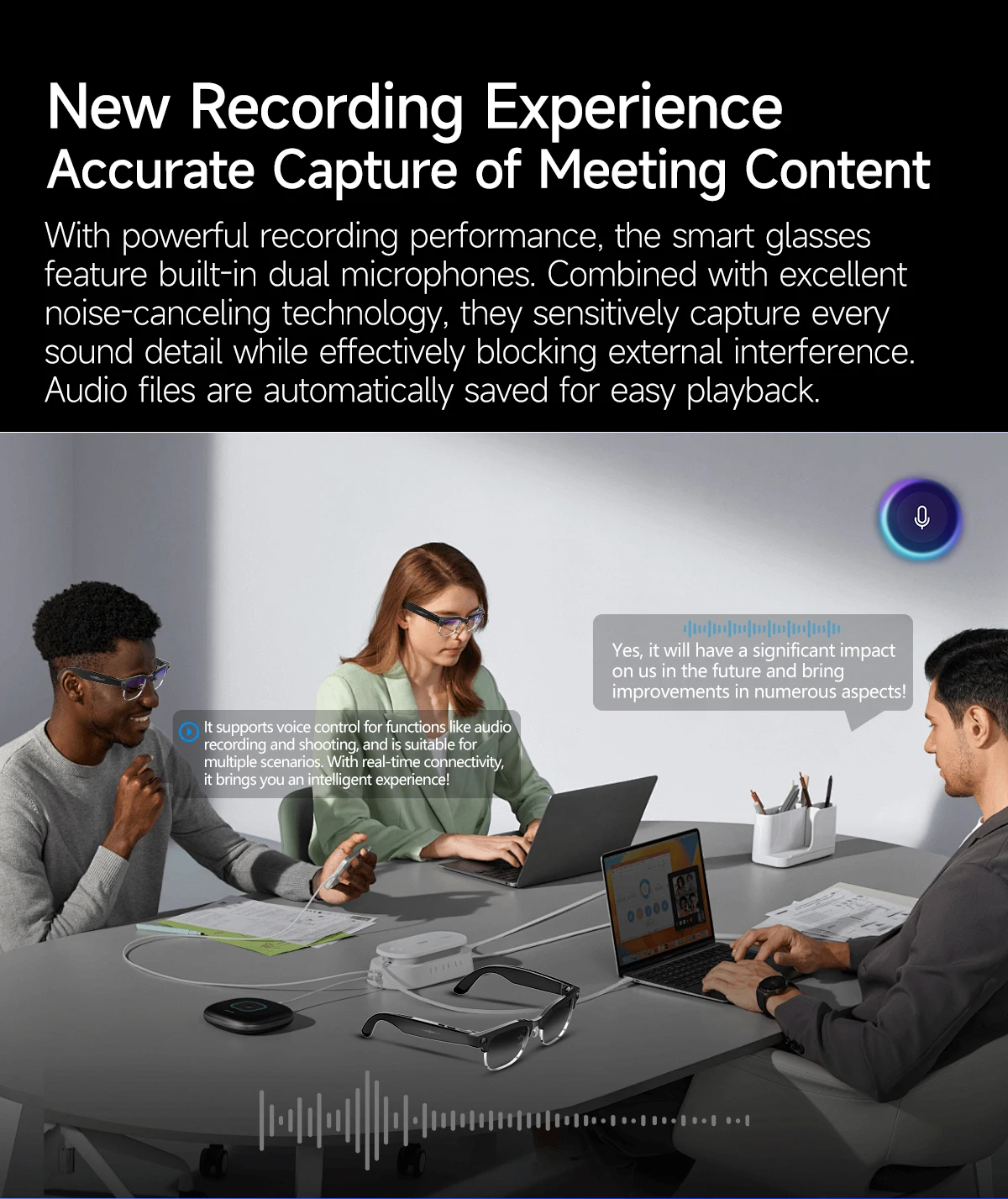 Communiquez en toute confiance par-delà les frontières grâce à la traduction en temps réel et à une large compatibilité linguistique. Idéales pour les voyages, les réunions internationales et les échanges quotidiens, ces lunettes intelligentes dotées d'IA facilitent la communication et permettent de surmonter les barrières linguistiques de manière naturelle et efficace.